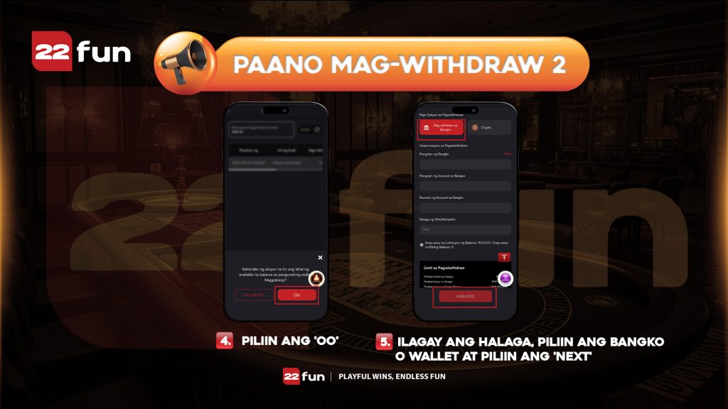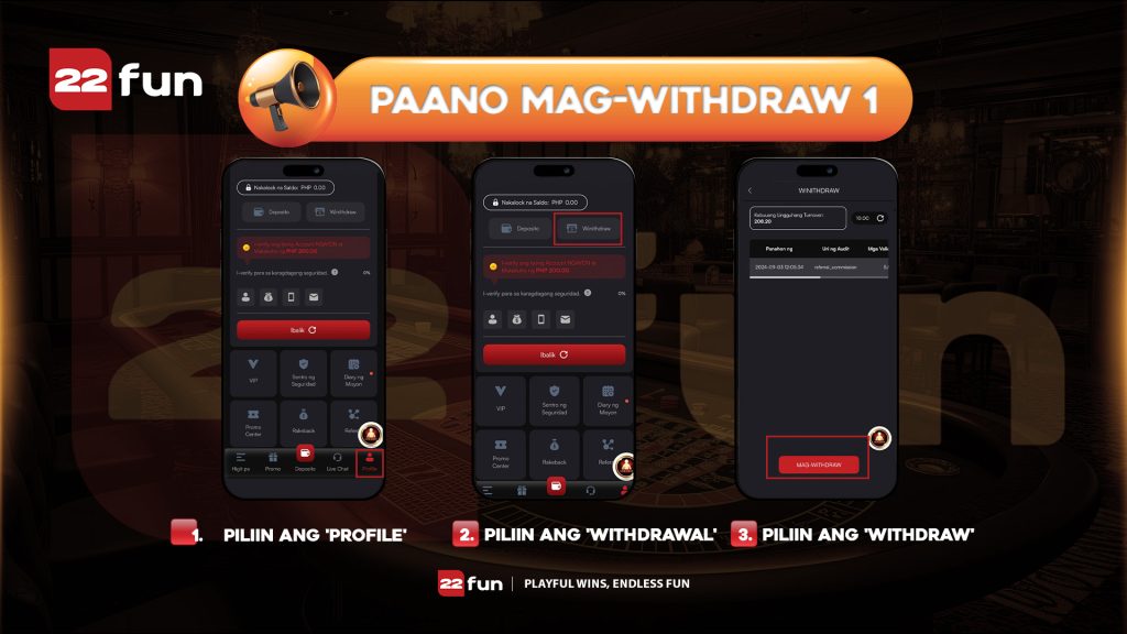 Here’s how to easily withdraw money from your 22FUN account: